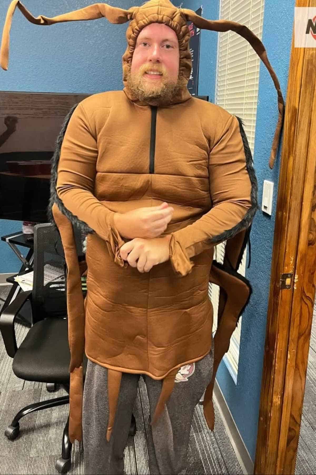 Halloween at the office can sometimes feel tame, but this choice keeps things festive while steering clear of overly scary. The humor lands best when you play it straight, pretending it’s just another day at work… as a cockroach.