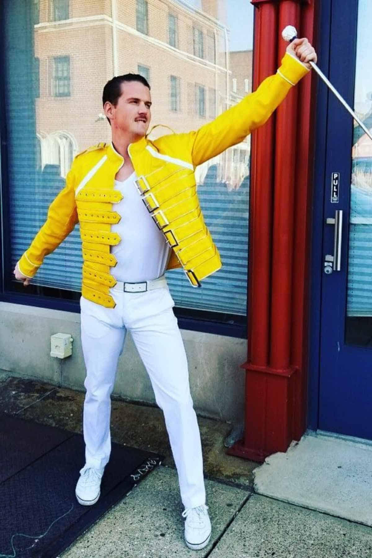 Crowds would have been swayed, microphones clutched, and air-guitars strummed if this Freddie Mercury Halloween costume had been spotted on stage. The iconic yellow military-style jacket, paired with crisp white pants and matching shoes, has been recognized instantly by music lovers everywhere.