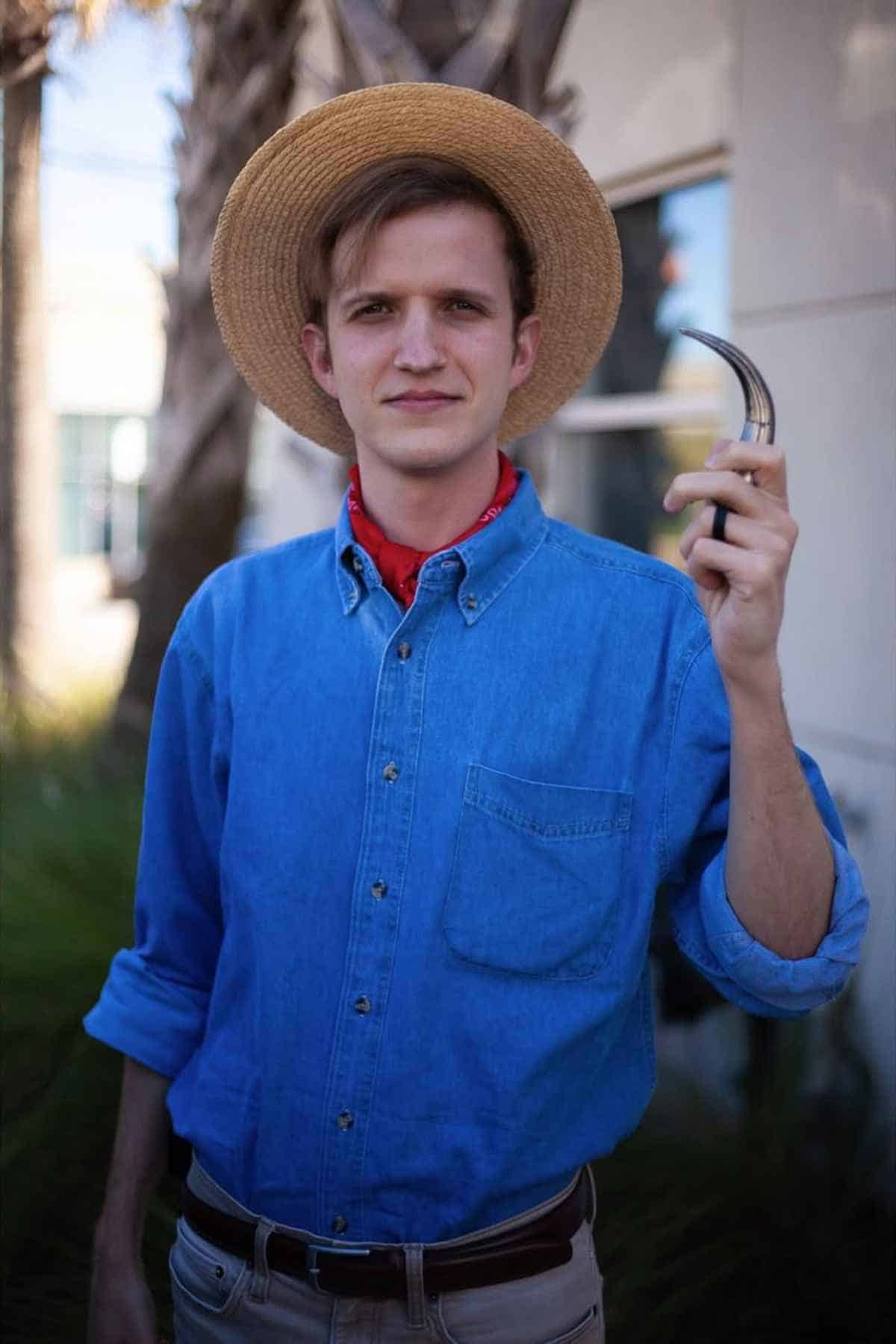 Dusty fossils would have been studied and epic prehistoric tales uncovered in this quirky paleontologist’s look. A straw hat, blue denim shirt, and a trusty little hand sickle make this outfit simple, fun, and instantly recognizable without being too over the top. A Halloween vibe can still be pulled off while keeping it festive and professional for work or casual events.