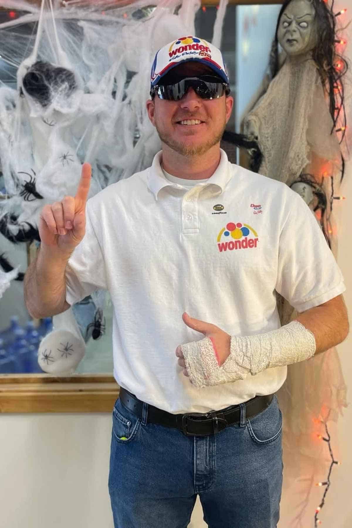 Extra humor can be added by tossing out famous Ricky Bobby lines like “If you ain’t first, you’re last” or “Shake and bake!” throughout the day. The costume can be DIY—trade the bandage for a toy steering wheel or carry a checkered flag as a prop. Both comfortable and festive, this outfit fits the bill for anyone who wants quick laughs without much prep. And yes, the finger-point pose is still non-negotiable for photos.