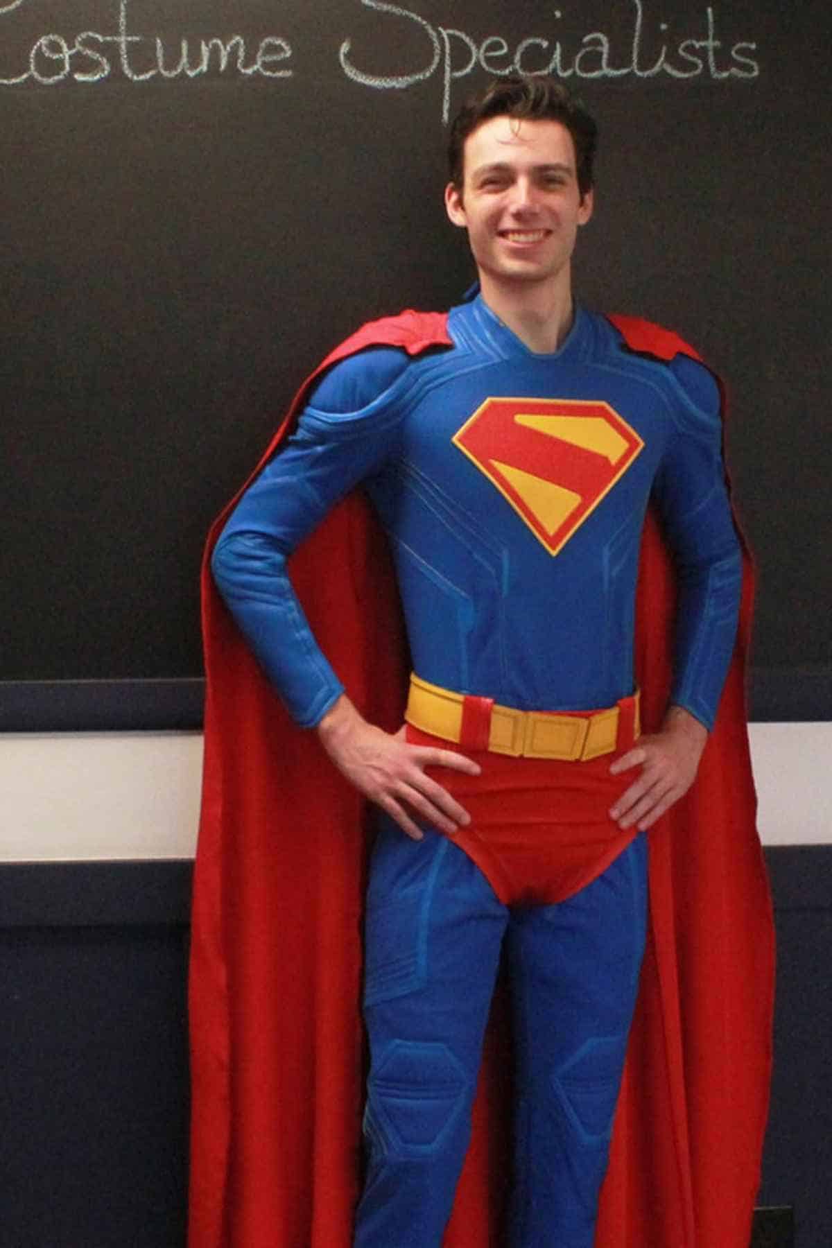 Superpowers met school spirit in this bright blue and red superhero getup, complete with a bold yellow belt and flowing cape. The chalkboard backdrop added an extra playful twist, turning this classic character into something that feels both nostalgic and fresh. It’s the perfect example of how a little color and confidence can transform a basic costume into a crowd favorite.